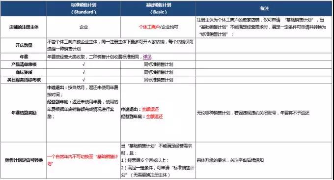 ◆注冊主體為企業(yè)的店鋪,可自由選擇兩種計劃;